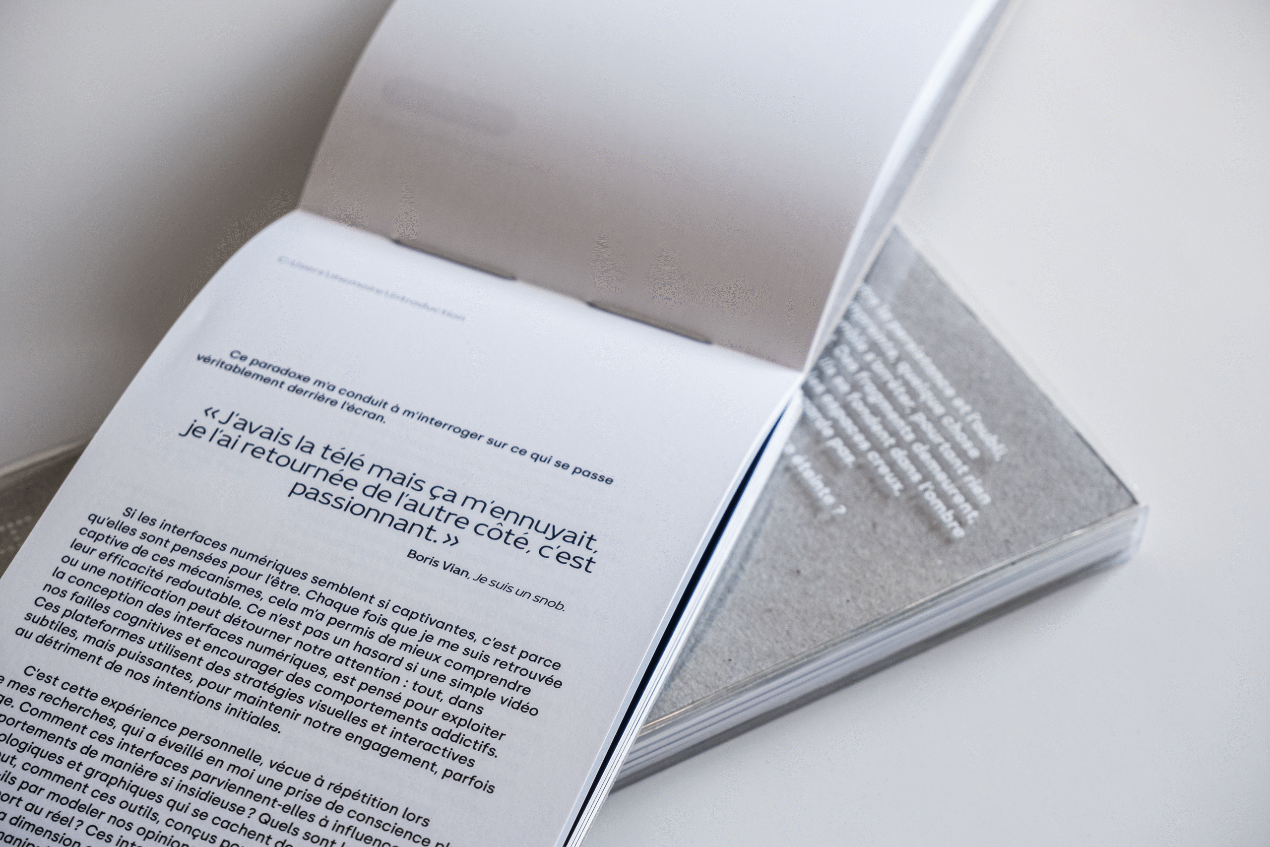 Je voulais que ma mise en forme ainsi que ma mise en page reflète physiquement l’objet d’étude de mon mémoire en s’inspirant directement du smartphone et des codes du design d’interface.